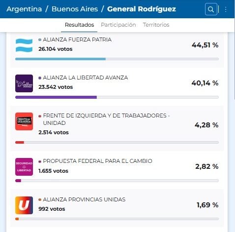 Con 4 puntos de diferencia se impuso Fuerza Patria en General Rodríguez